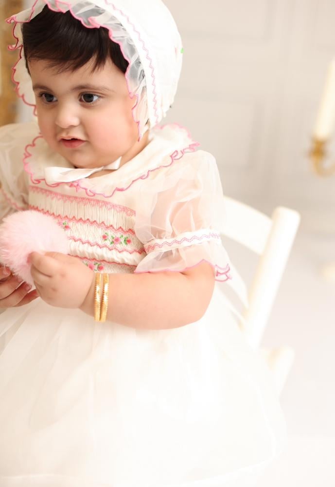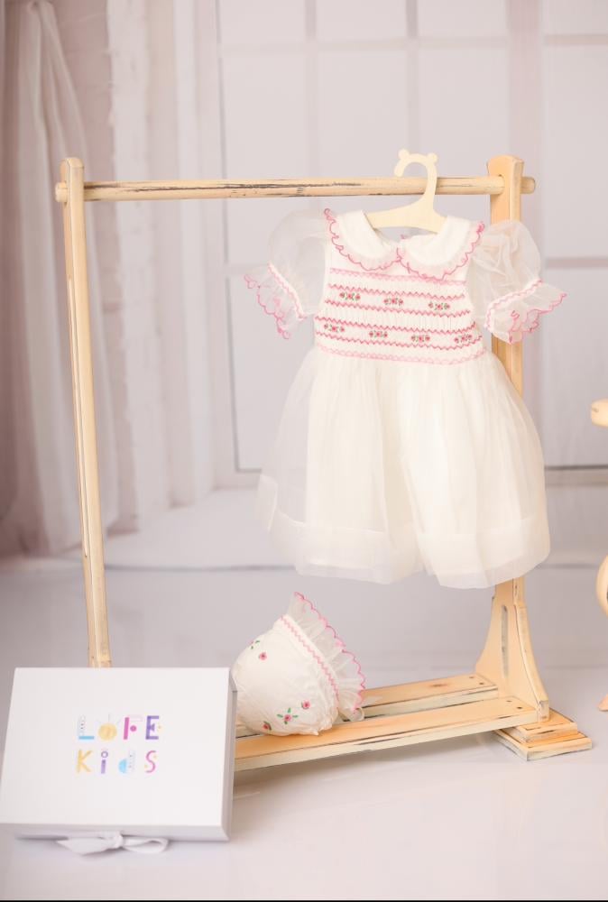 اجعلي طفلتك تتألق بإطلالة أنيقة مع فستان البنات أطفال تطريز سموك، الذي يجمع بين الفخامة والراحة، مما يجعله مثالي للمناسبات الخاصة، الاحتفالات العائلية، والأعياد.